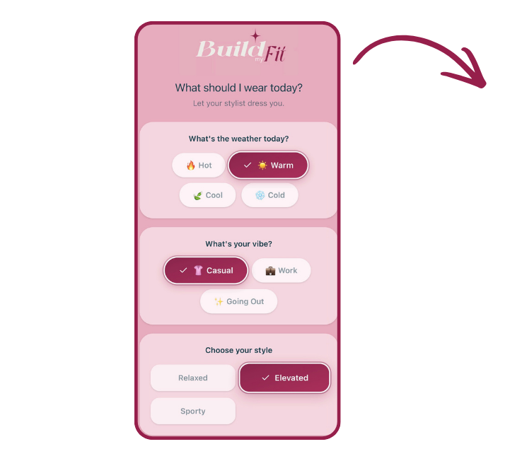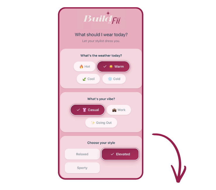 So I created Build My Fit as your pocket stylist. Every single outfit you see has been hand-picked by me, tested in real life, and designed to work with pieces you probably already own.